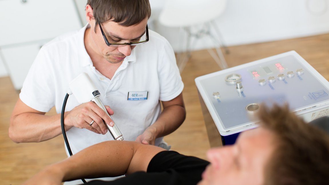 Therapie: Therapeutisch gehen wir wie bei dem Tennisarm vor.